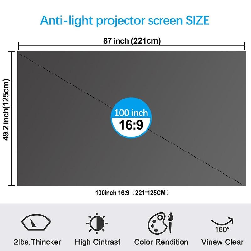 100-Inch 4K ALR Metal Projector Screen – High Gain 2.4, Anti-Light, Foldable & Portable