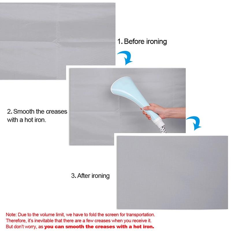 Method 1: Mount the screen flat on the wall. Over time, the creases will naturally disappear.