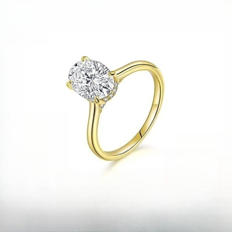 This stunning diamond-inspired ring features a brilliant oval-cut cubic zirconia center stone that captures the look of fine jewelry. With a D-color, VVS1-like appearance, it reflects light beautifully from every angle, creating an eye-catching sparkle that’s perfect for proposals, anniversaries, or everyday glamour.
