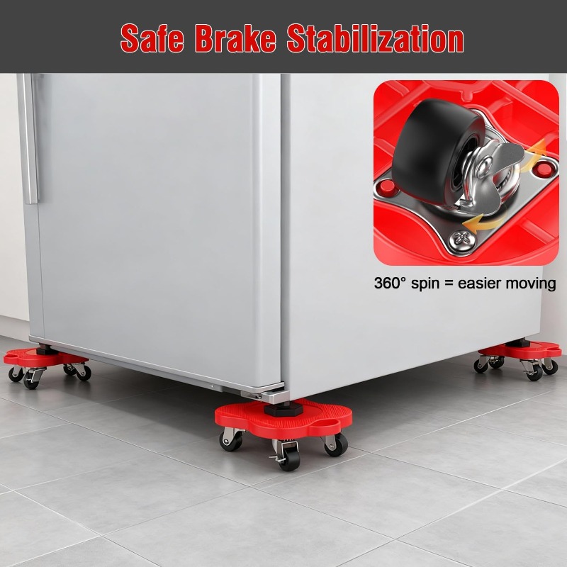 Each furniture slider is equipped with a built-in brake system. Once your furniture is in position, simply lock the wheels to prevent unwanted movement—ideal for appliances and large furniture.