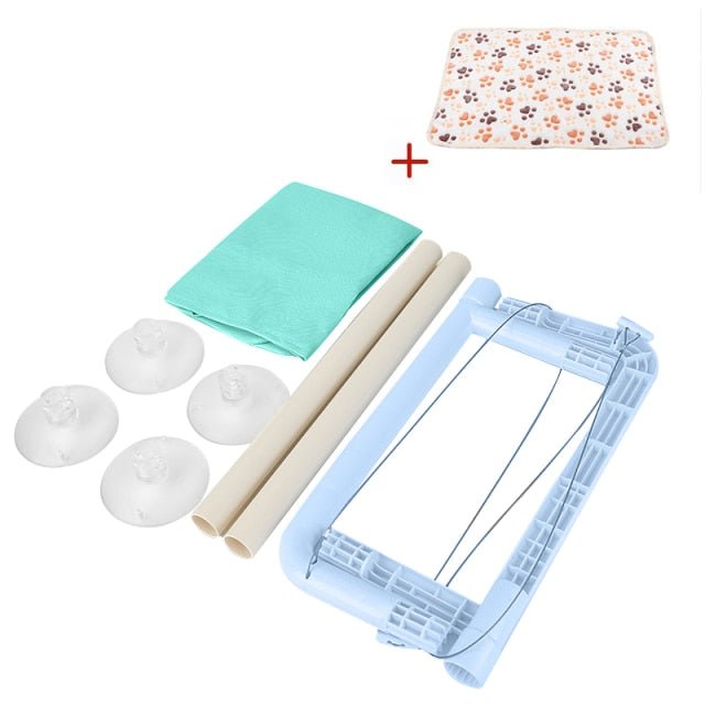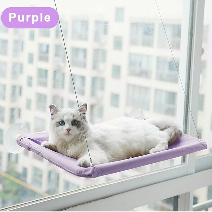 Want your cat to sleep and relax with a view? With our hanging window bed, your cat will be watching the streets all day long! This bed is extremely comfortable, so your cat will have a good night's sleep. Easy to place wherever you want because of the 4 suction cups it uses to attach to the window or any other smooth surface.