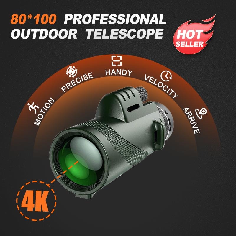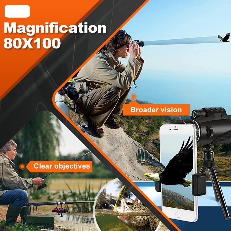Imagine capturing distant landscapes, wildlife, or city details with just your phone. This 80x100 monocular telescope delivers powerful zoom in a compact, easy-to-carry design.