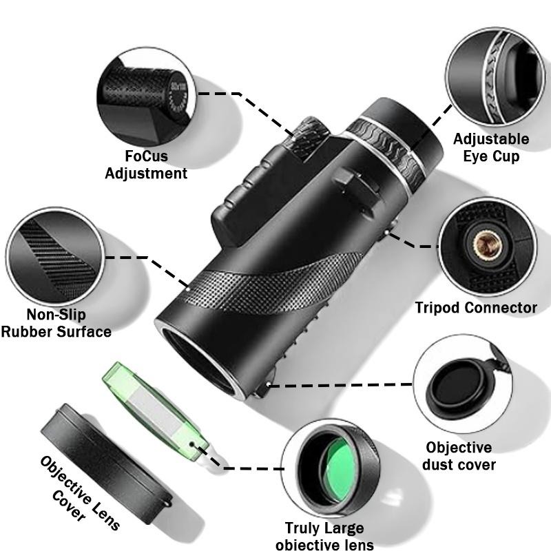 Water-resistant and suitable for cold environments, this monocular is ready for hiking, camping, wildlife watching, and travel adventures.