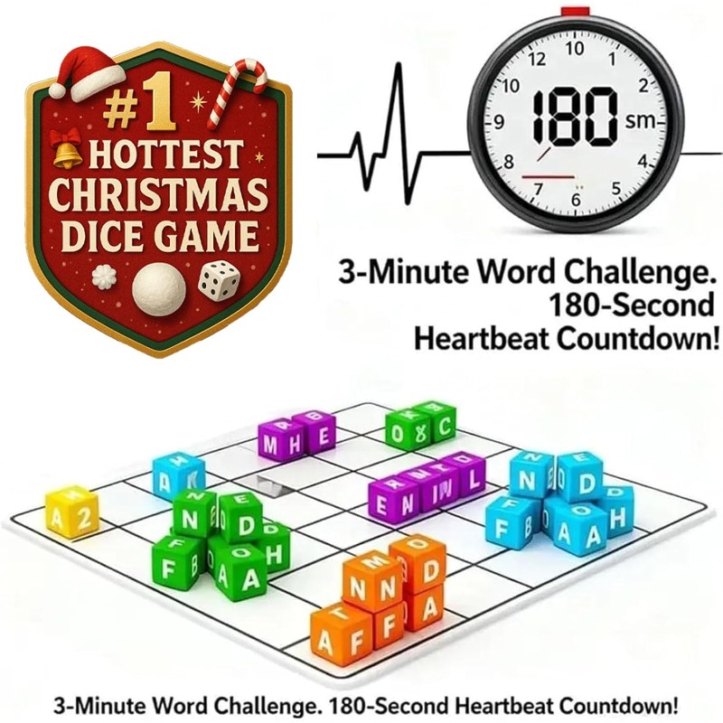 Roll 12 colorful letter dice simultaneously and race against the 180-second timer! Every round pushes your speed, creativity, and vocabulary to the next level. Perfect for parties, family game nights, or solo brain training.